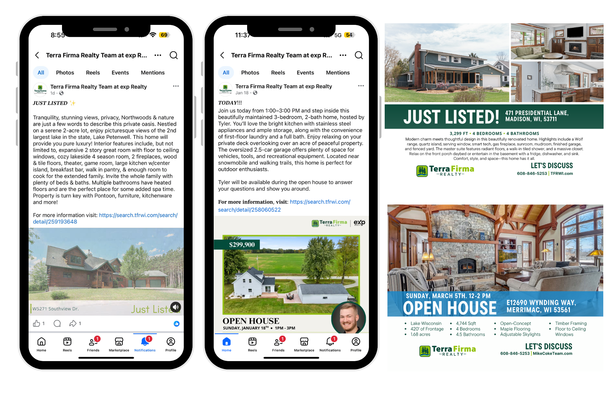 At Terra Firma Realty we hire professional photographers to give your property a competitive edge. Additionally, we use a combination of interior/exterior photos, aerial drone photos, video, virtual tours and dollhouse images to showcase the best features of your property. Our marketing Team ensures your property is represented in the best light.